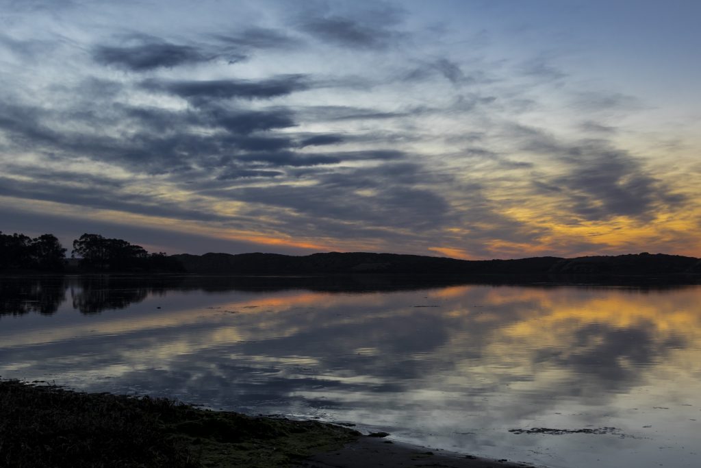 My daily walk often takes me through the Cuesta Inlet. On the water’s edge, you can see from the Sandspit to Hollister Peak (when the fog cooperates). This particular evening the waters were dead calm and the reflected sky created a symmetrical composition that constantly changed, like a colorful kaleidoscope. I stayed until it was too dark to see, glad that the inlet’s geography is now so familiar.