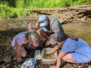 Students search for macroinvertebrates – stream bugs – at Gee Creek. Photo courtesy of the Lower Columbia Estuary Partnership.