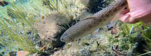 This image shows a steelhead trout being released unharmed back into the creek following capture. We hope to continue our work tagging and tracking steelhead to learn more about how they use our watershed creeks and the estuary. Photo courtesy of Matt McKechnie.