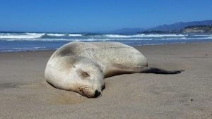 This California sea lion is suffering from domoic acid toxicosis and should be reported to the Marine Mammel Center or the West Coast Region Stranding Hotline. Photo courtesy of the Channel Islands Marine & Wildlife Institute.