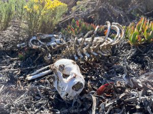 These sea otter remains, found by an Estuary Program staff member, were reported to the California Department of Fish and Wildlife.