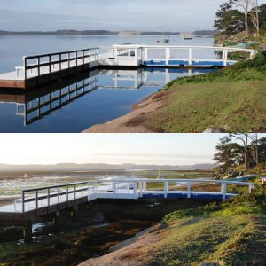This photo of the Baywood Pier shows the difference between high and low tides in the Morro Bay estuary during a king tide event.