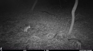 An intimate moment between two gray foxes captured by the Upper Chorro Creek Camera.