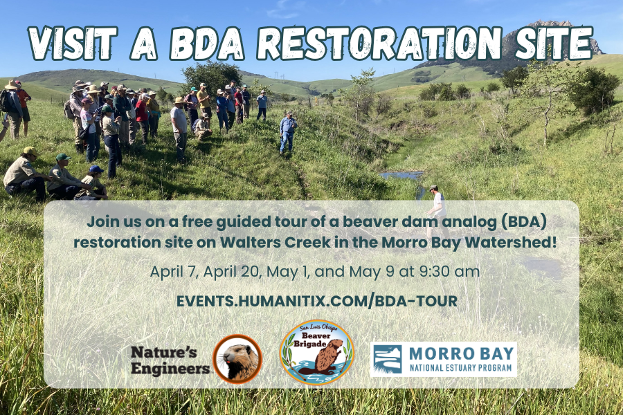The Estuary Program’s Community Projects are efforts developed in collaboration with partners to support our goals of protecting and restoring Morro Bay. Recently, the Estuary Program partnered with the San Luis Obispo Beaver Brigade (SLOBB) to host a day-long interactive workshop to educate agencies, local non–profits, landowners, and community members about low-tech process-based restoration on the Central Coast.