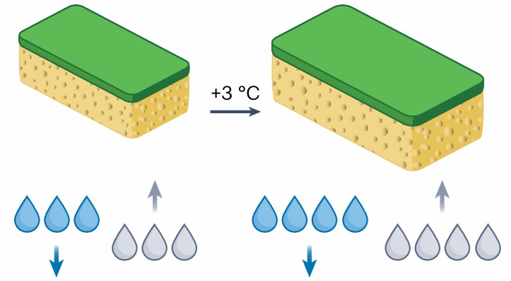 In a recent publication, Swain and fellow researchers explored the concept of “hydroclimate volatility,” or the rapid and intense swing between very dry and very wet conditions (Swain et al. 2025). The article outlined a simplified model in which the atmosphere is represented by a large sponge. As the atmosphere warms, the capacity for it to hold more water vapor increases, therefore our hypothetical sponge becomes “thirstier.” Following the analogy, our thirsty sponge takes longer to become fully saturated with water and when it is wrung out, significantly more water is released all at once. In other words, longer droughts emerge because the atmosphere holds onto water vapor for longer periods of time and small rain events are less frequent. By the time the atmosphere has become saturated with water vapor and the time has finally come to release it, the resulting deluge can be fairly extreme and cause extensive flooding.