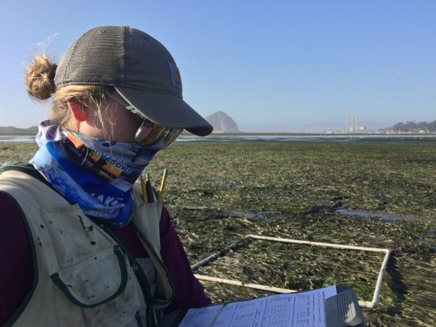 Makenzie, Monitoring Coordinator, takes data while monitoring eelgrass in Morro Bay.
